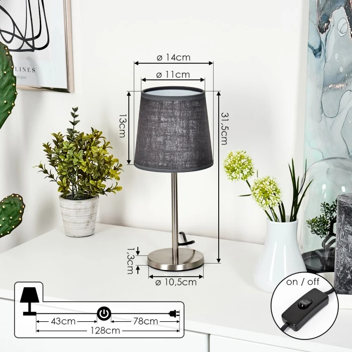 Besonderheiten: Diese Tischleuchte verfügt über einen An-/Ausschalter am Kabel.