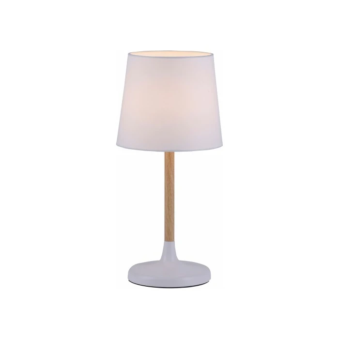Die dekorative Tischleuchte NIMA mit weißem Textilschirm ist das perfekte Wohnaccessoire zur Ergänzung eines modernen Einrichtungsstils wie beispielsweise dem Landhausstil oder dem skandinavischen WohnModern. Der hölzerne Leuchtenfuß ist weiß abgesetzt, was der Leuchte einen besonderen Charme verleiht. Der Textilschirm filtert das Licht und streut es somit sanft an die Umgebung ab. NIMA kann auch als Nachttischleuchte eingesetzt werden, als Lichtquelle im Flur oder aber als Lichtakzent im Fenster. Die Leuchte wird über einen Schnurschalter bequem ein- und ausgeschaltet. Die Tischlampe ist mit einem E14 Leuchtmittel mit 40 auszustatten. Die Leuchte hat einen Durchmesser von 20 cm und eine Höhe von 43 cm.